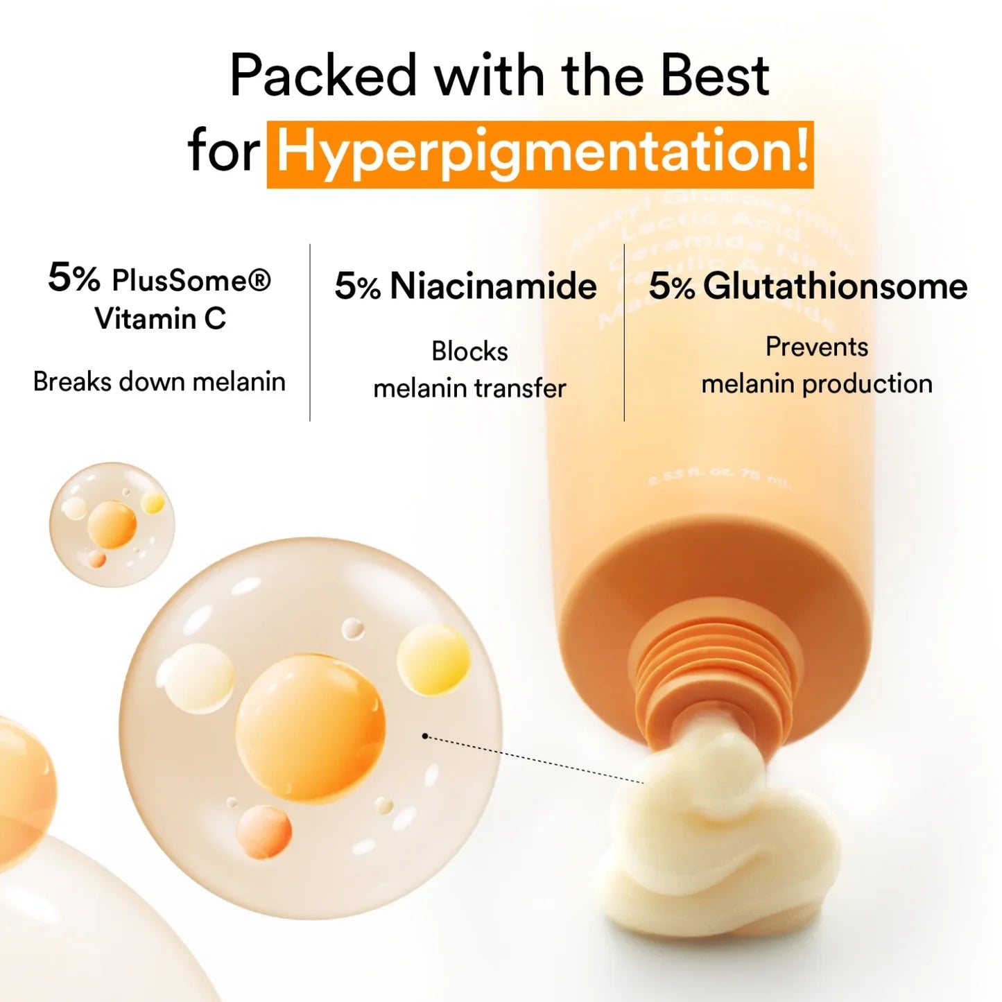 - PLUSSOME® VITA C: A specialized Vitamin C derivative that works synergistically with Glutathione to boost radiance and improve skin clarity.