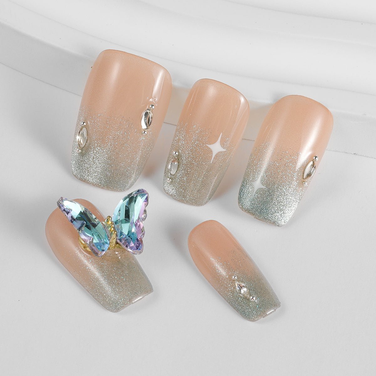 Kiokii Handmade Press-On Nails-Blue Butterfly