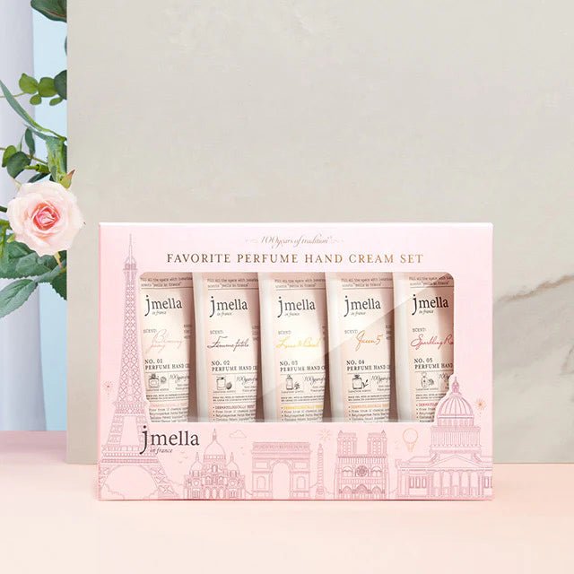 A luxurious hand cream set featuring five French-inspired fragrances. Each cream is formulated with shea butter, coconut oil, and avocado oil to hydrate and soften dry hands while leaving a delicate, lingering scent.