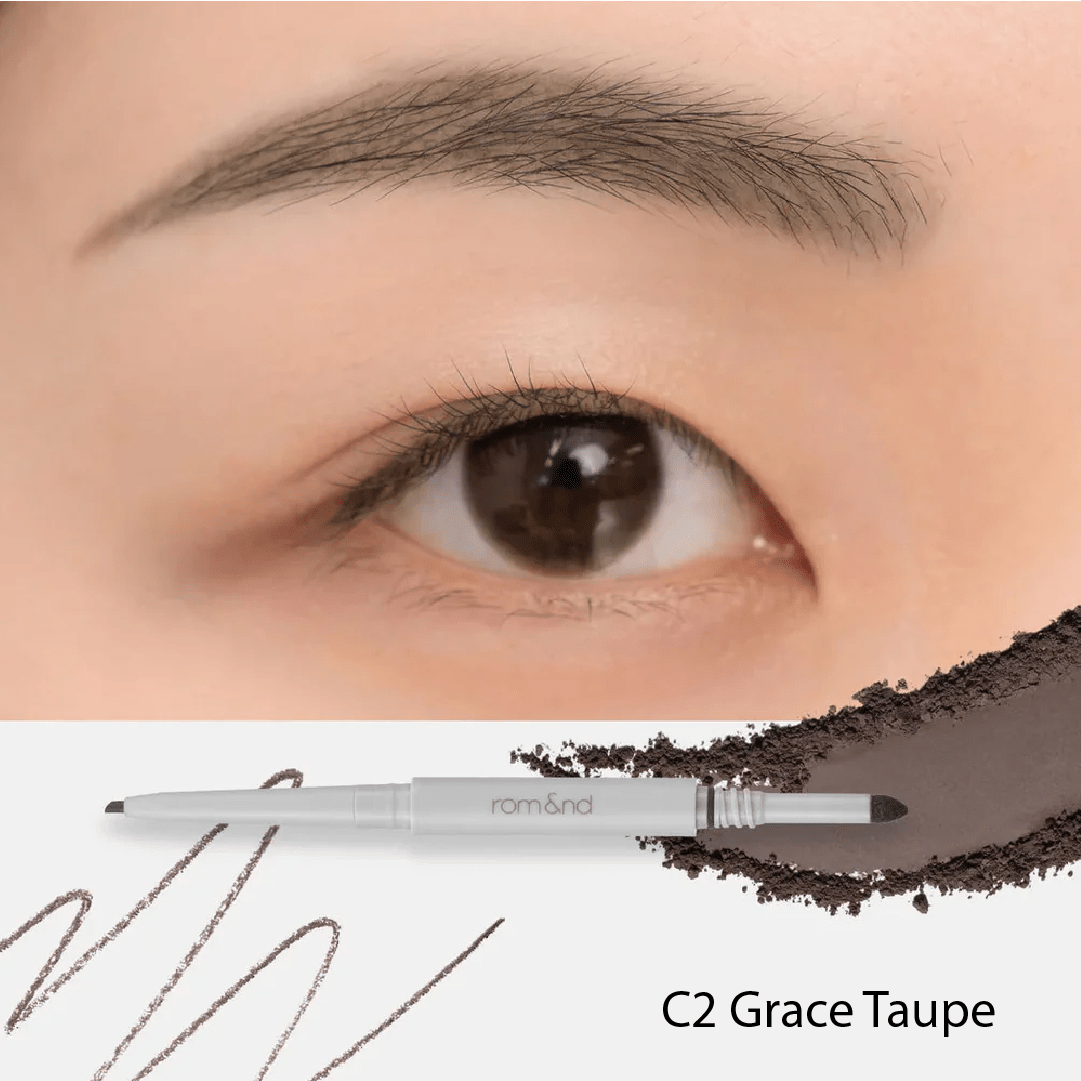 A versatile 3-in-1 eyebrow pencil by Romand, designed to create natural, precise, and long-lasting brows. Featuring a 1.5mm fine-tip pencil, a powder sponge tip, and a built-in spoolie brush, it offers everything you need for defining, filling, and grooming brows in one sleek tool.