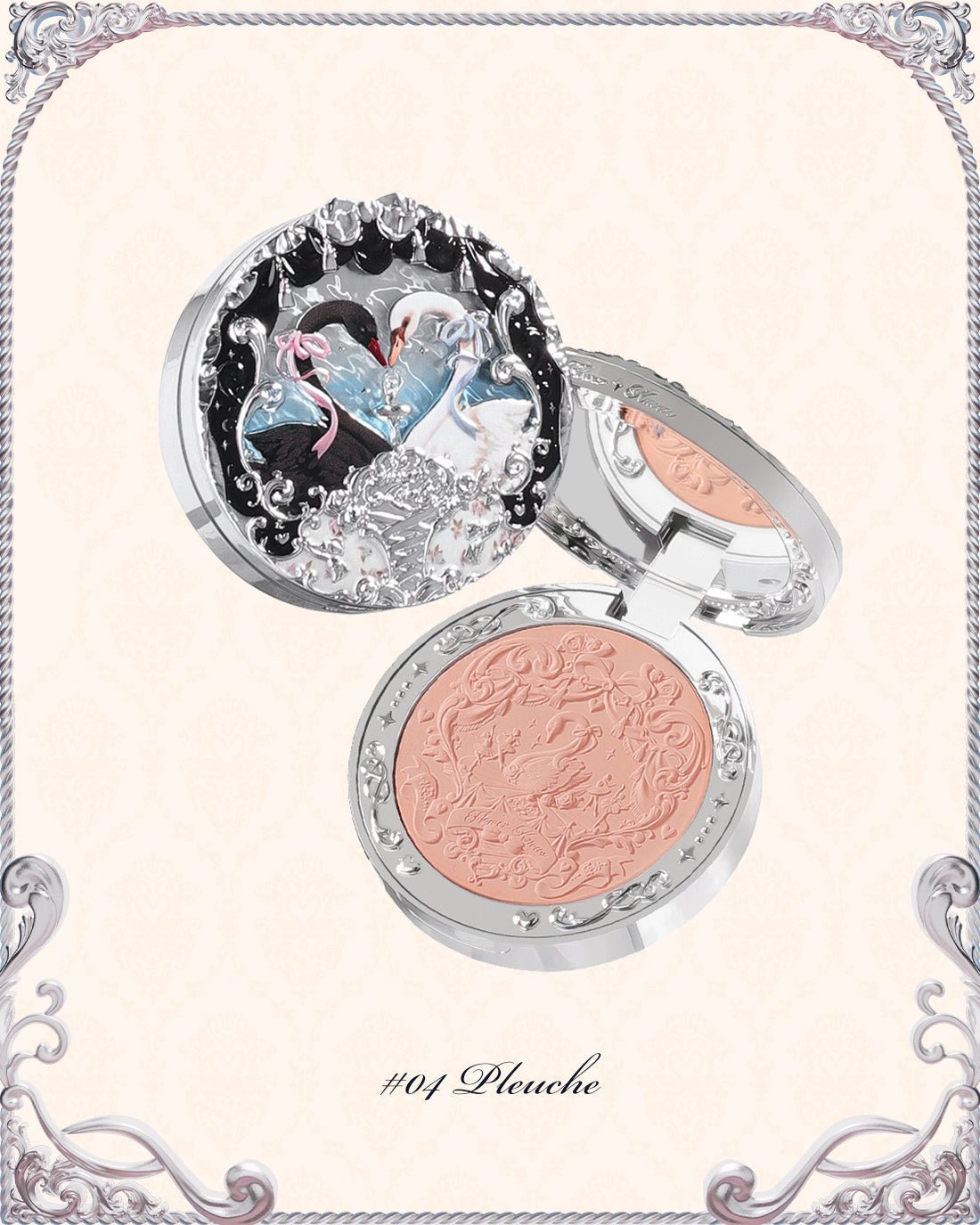 The Swan Ballet Series Embossed Blush typically comes in a compact adorned with intricate designs and ballet-inspired motifs, reflecting the beauty and sophistication of ballet performances. The blush itself is formulated with finely milled pigments that provide a silky-smooth texture and buildable color payoff.