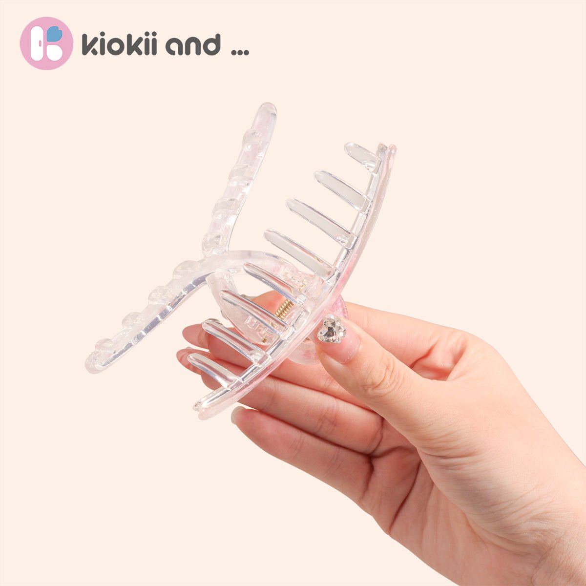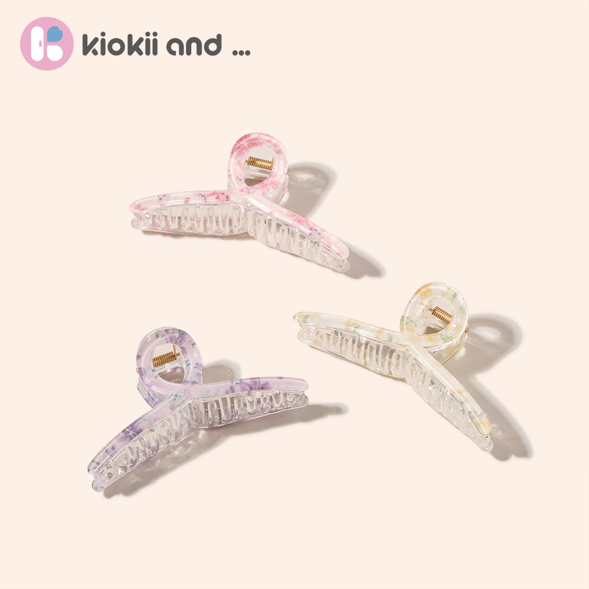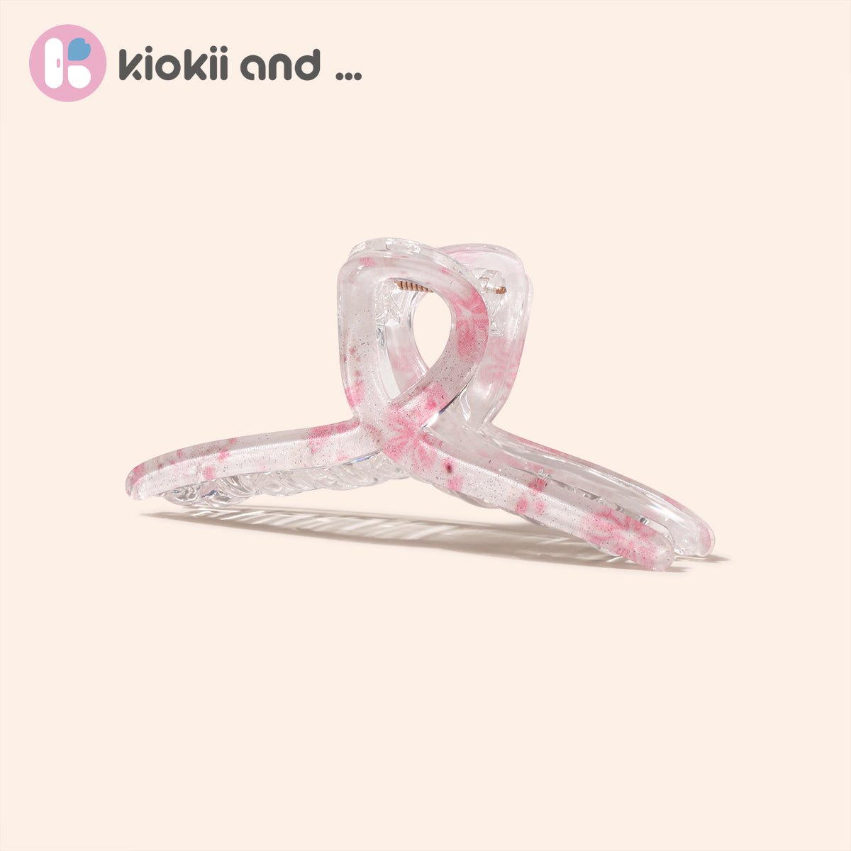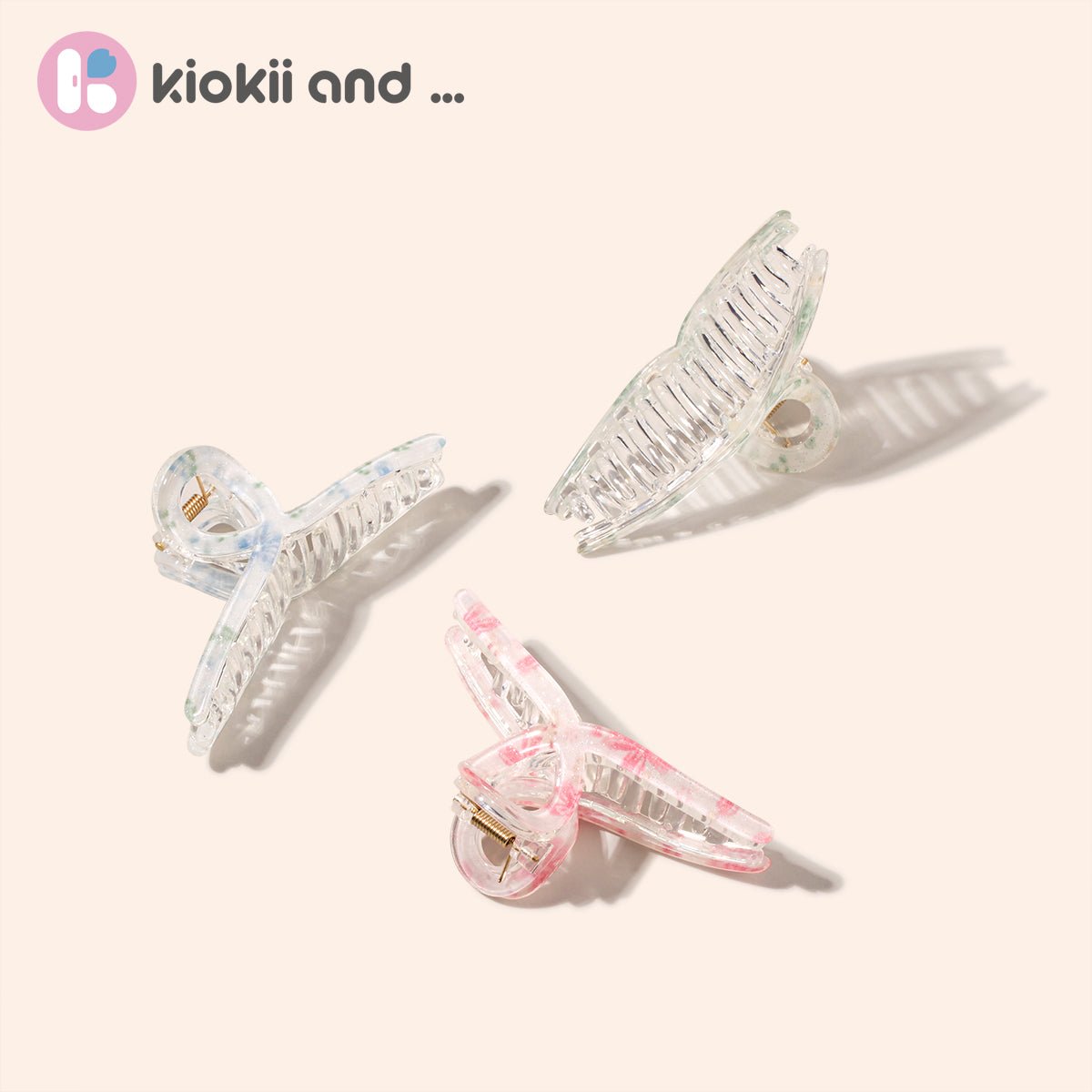A clear Y-shaped hair claw with embedded floral patterns. Made from lightweight acrylic, this clip offers a comfortable grip for thin to medium hair. Ideal for everyday half-up styles or quick twists.