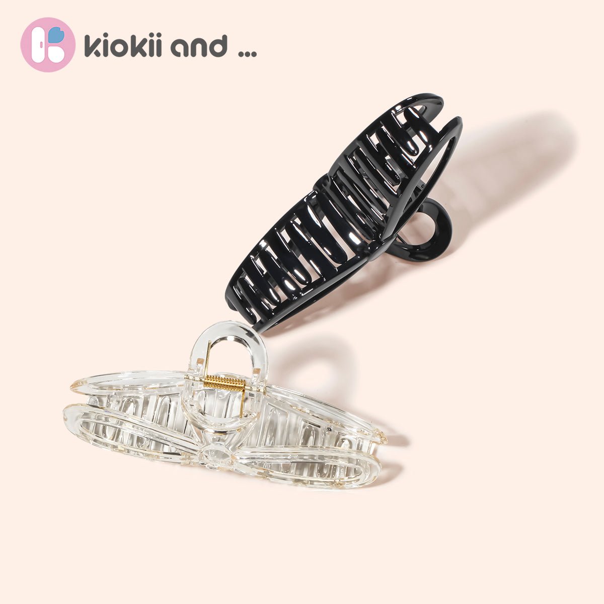 A sculpted double-loop hair claw with a lightweight frame and open center design. Made from durable polycarbonate and acrylic, it provides a comfortable hold for fine to medium hair. Available in classic black or clear for versatile everyday styling.
