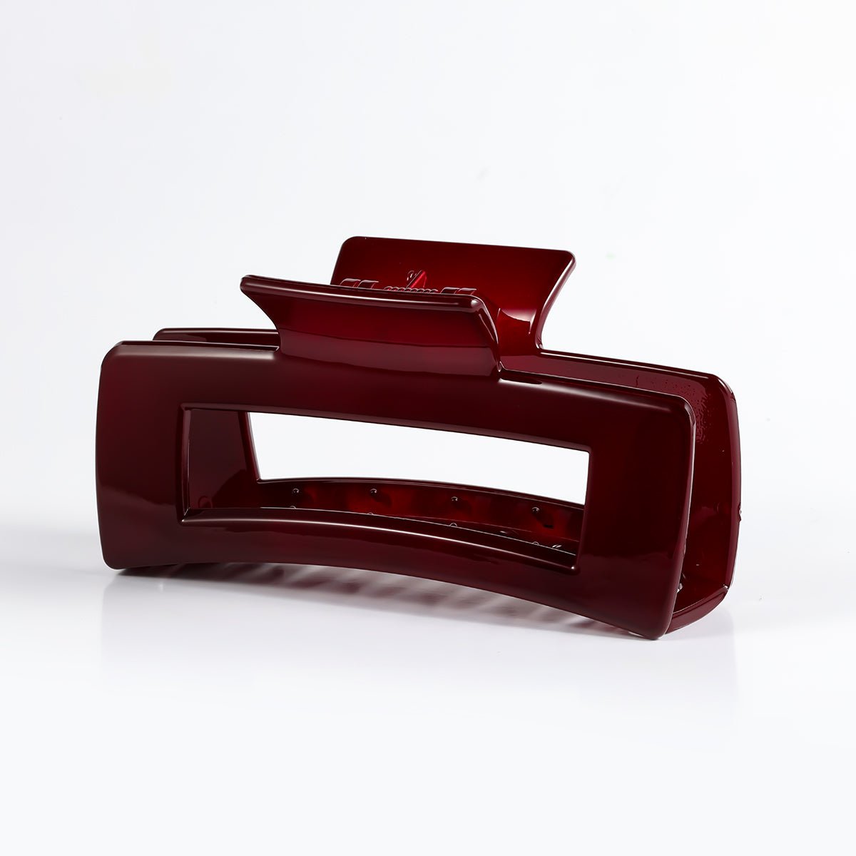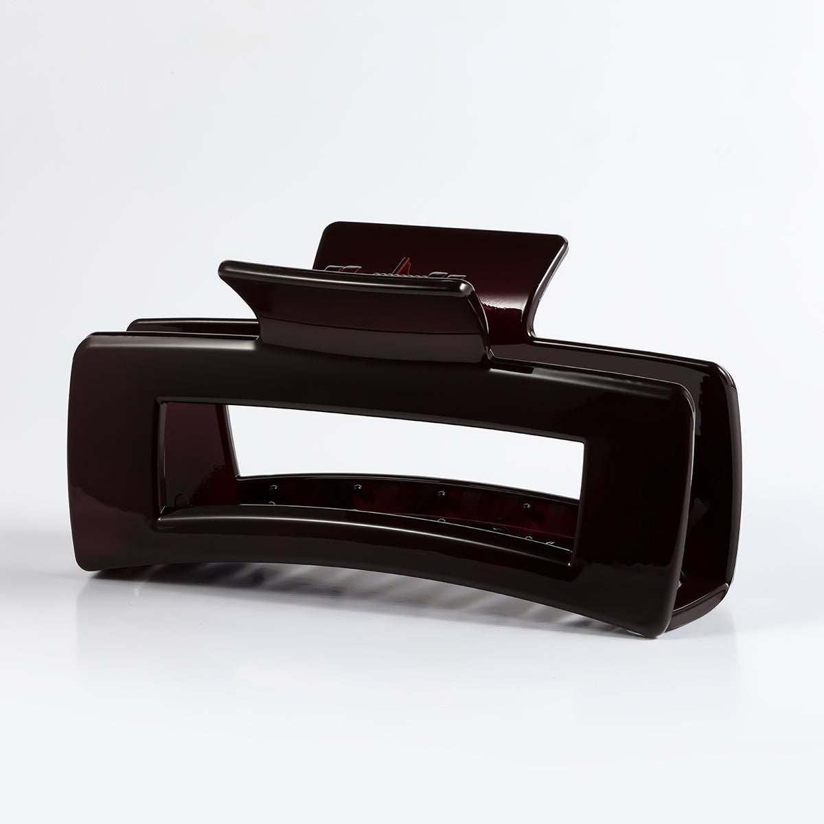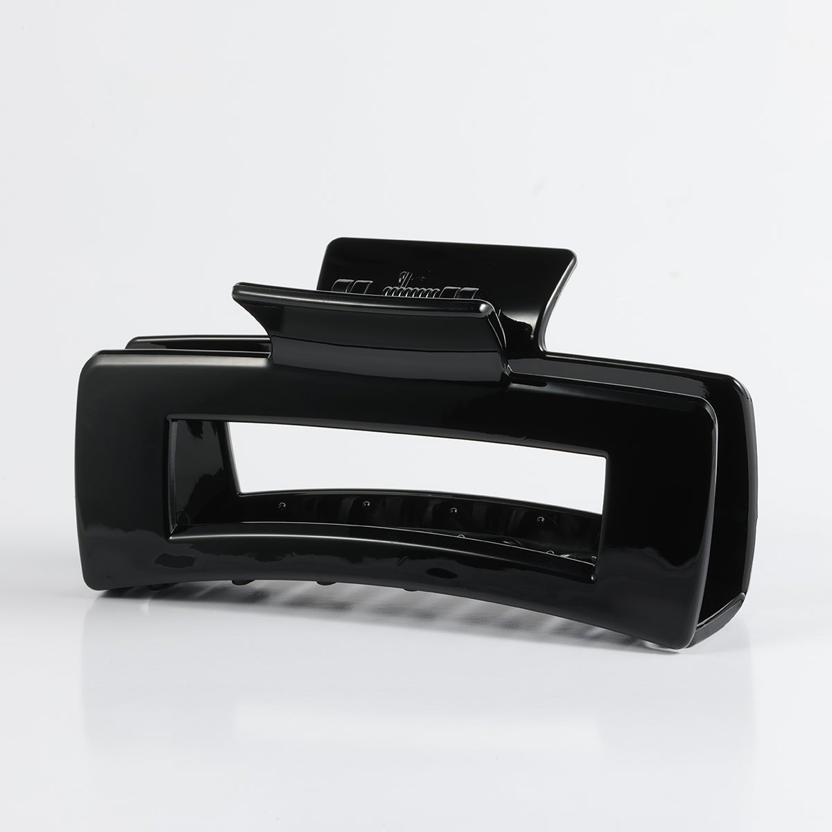 This glossy rectangle claw clip is crafted from durable polycarbonate and acrylic for a sleek, polished finish. With its strong grip and wide teeth, it’s perfect for securing thick or long hair in place all day, ideal for everyday wear or quick updos.