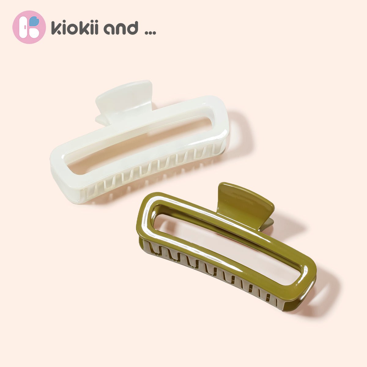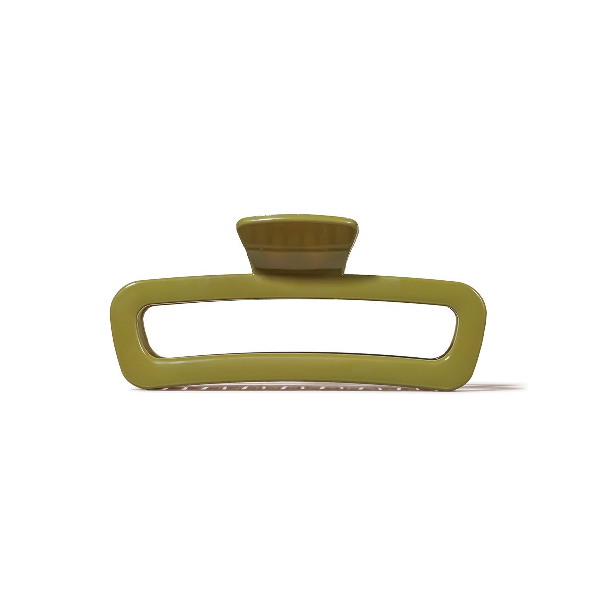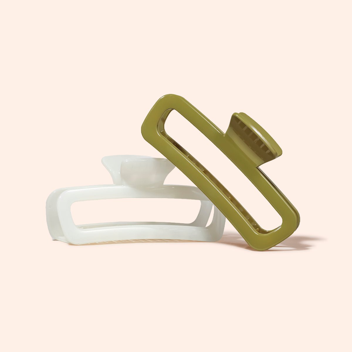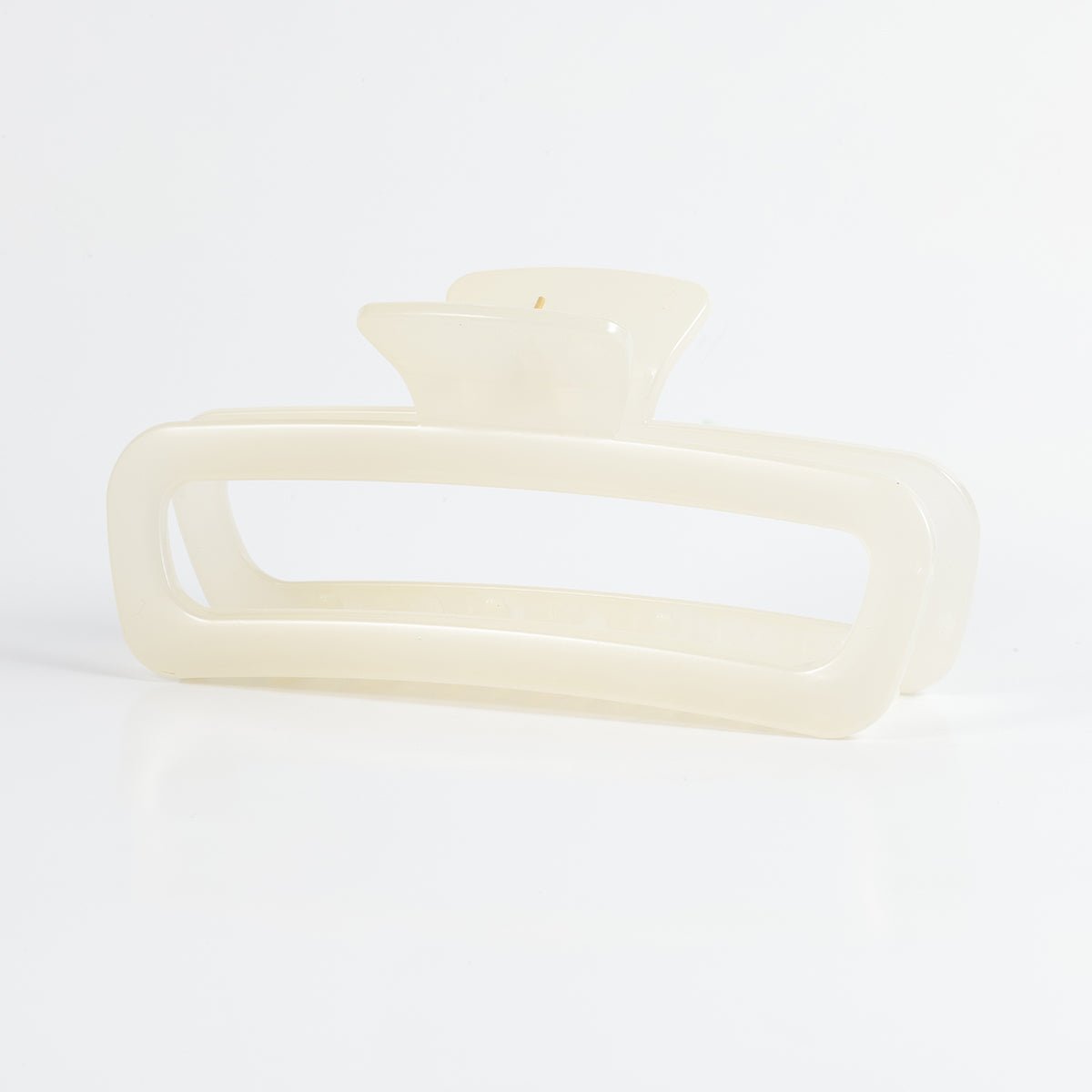 A matte rectangle hair claw with an open-frame design and smooth solid finish. Built from durable polycarbonate and acrylic, this clip offers a strong grip for medium to thick hair and works well for everyday buns or half-up styles.