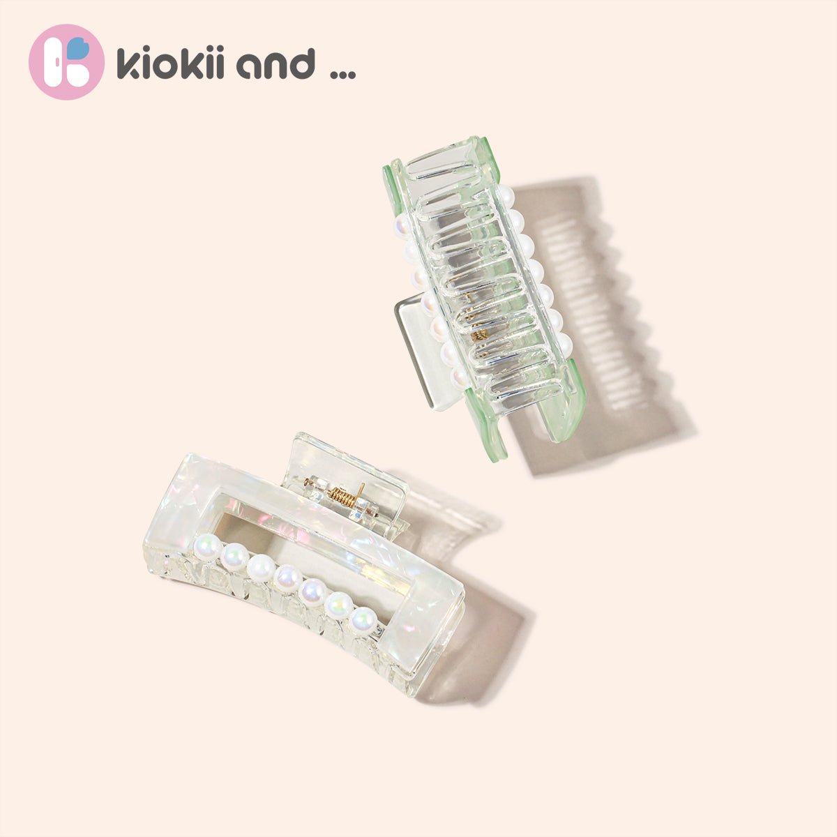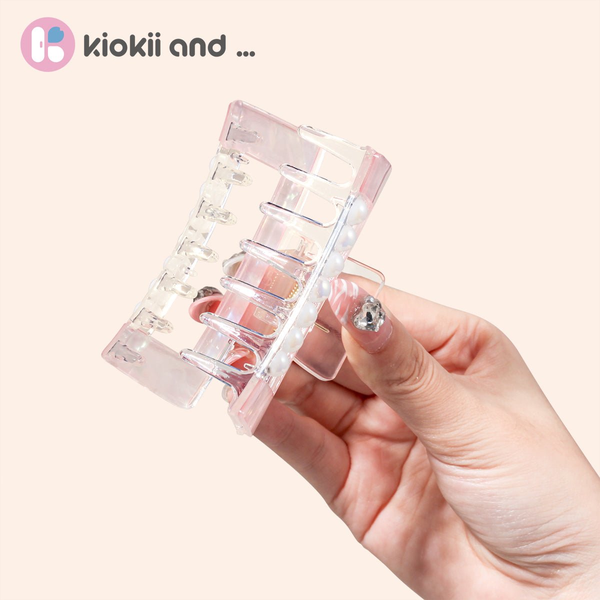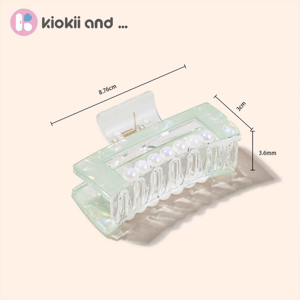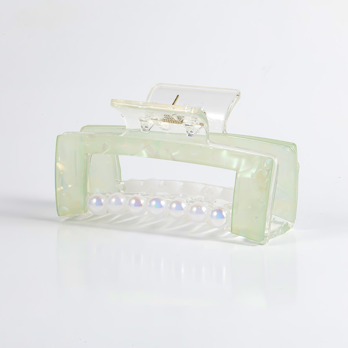 A rectangle hair claw made of iridescent acrylic, finished with a row of pearl accents. Durable and lightweight, designed to hold fine to medium hair securely for daily styling.