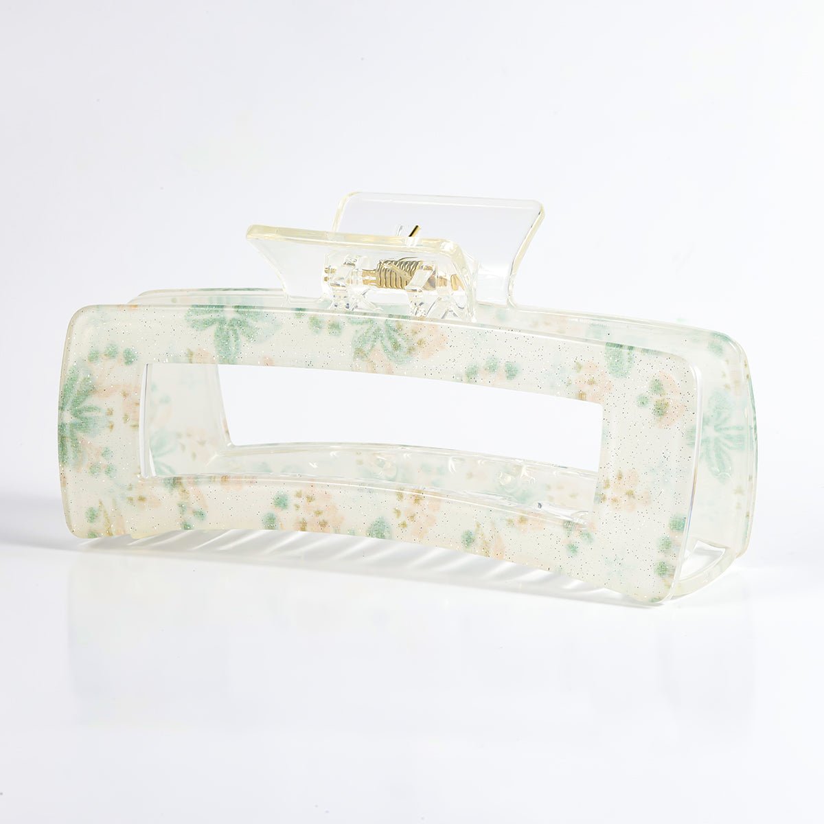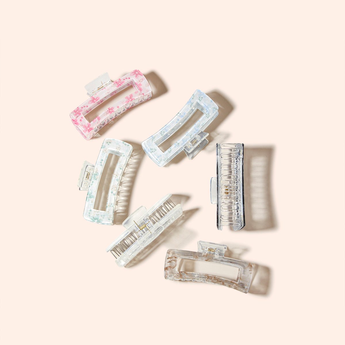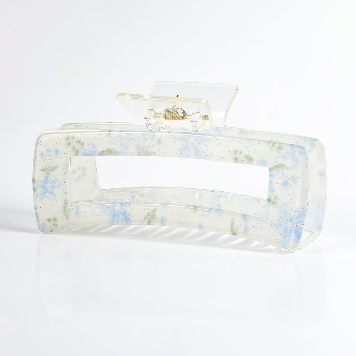 Add a playful twist to your hair routine with this printed clear claw clip. Featuring embedded floral and abstract patterns inside durable acrylic, it’s a fresh take on the everyday rectangle clip. Lightweight yet sturdy ,perfect for casual half-ups, messy buns, or securing fine to medium hair.