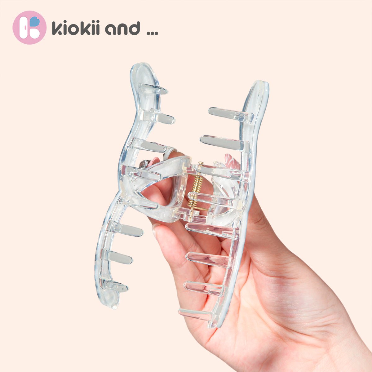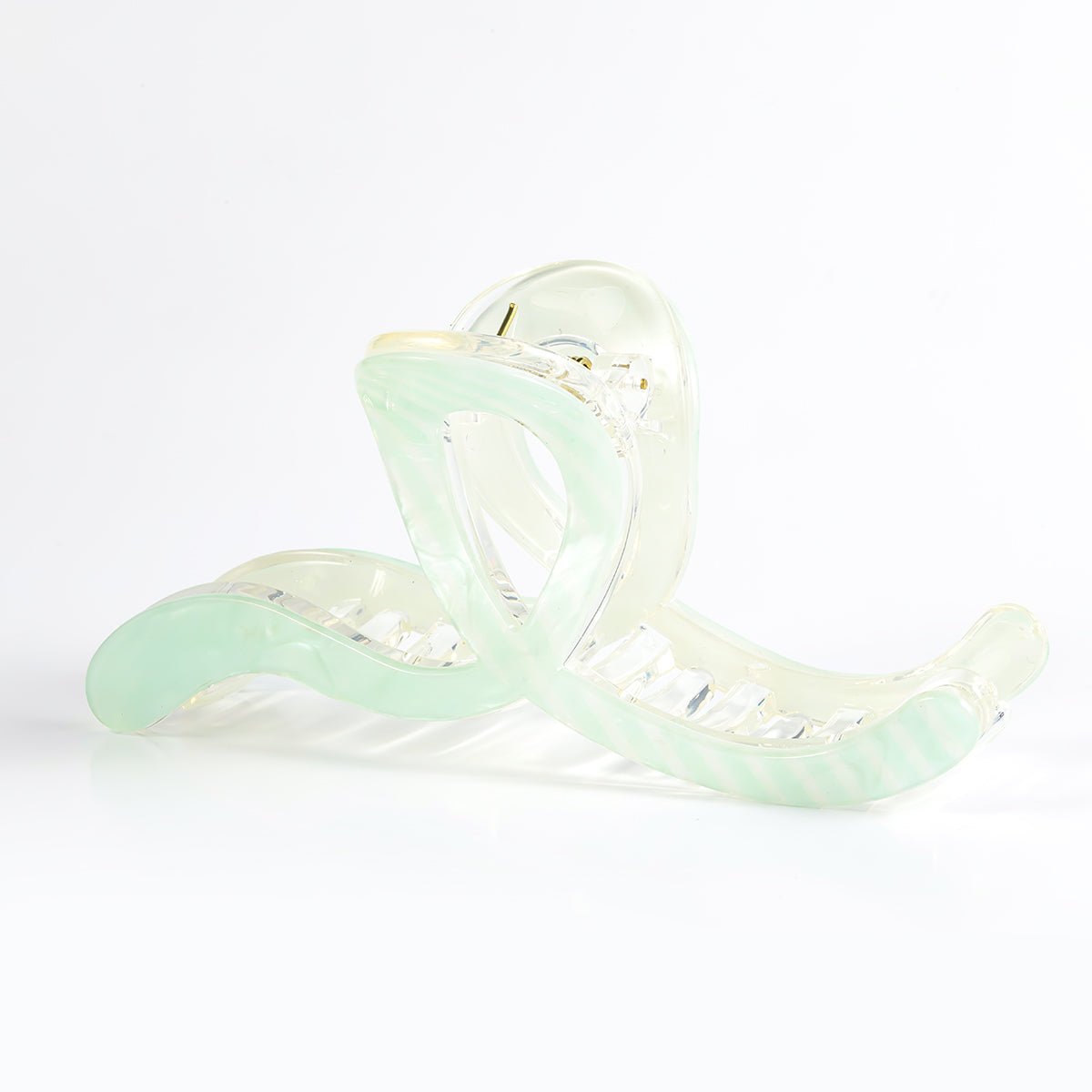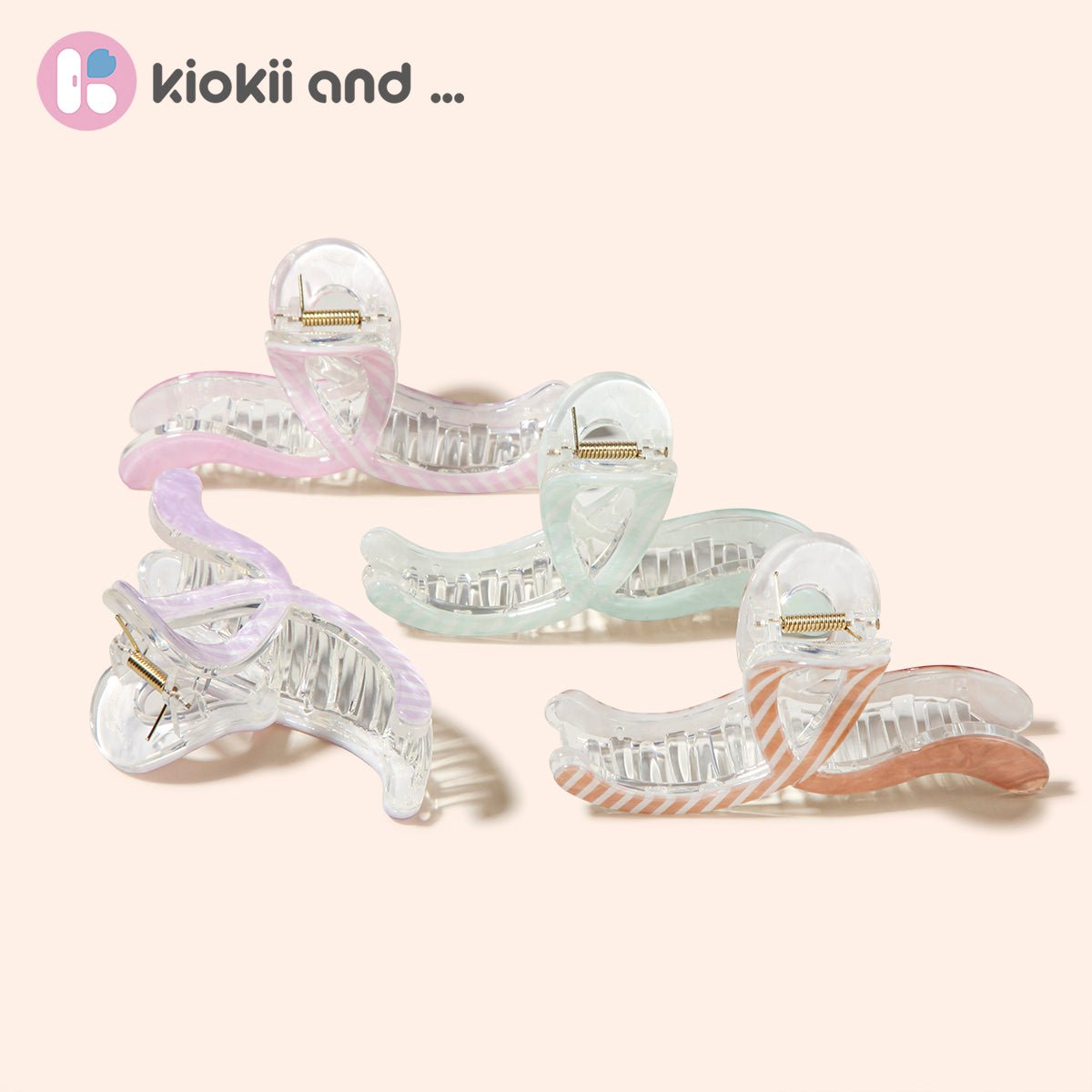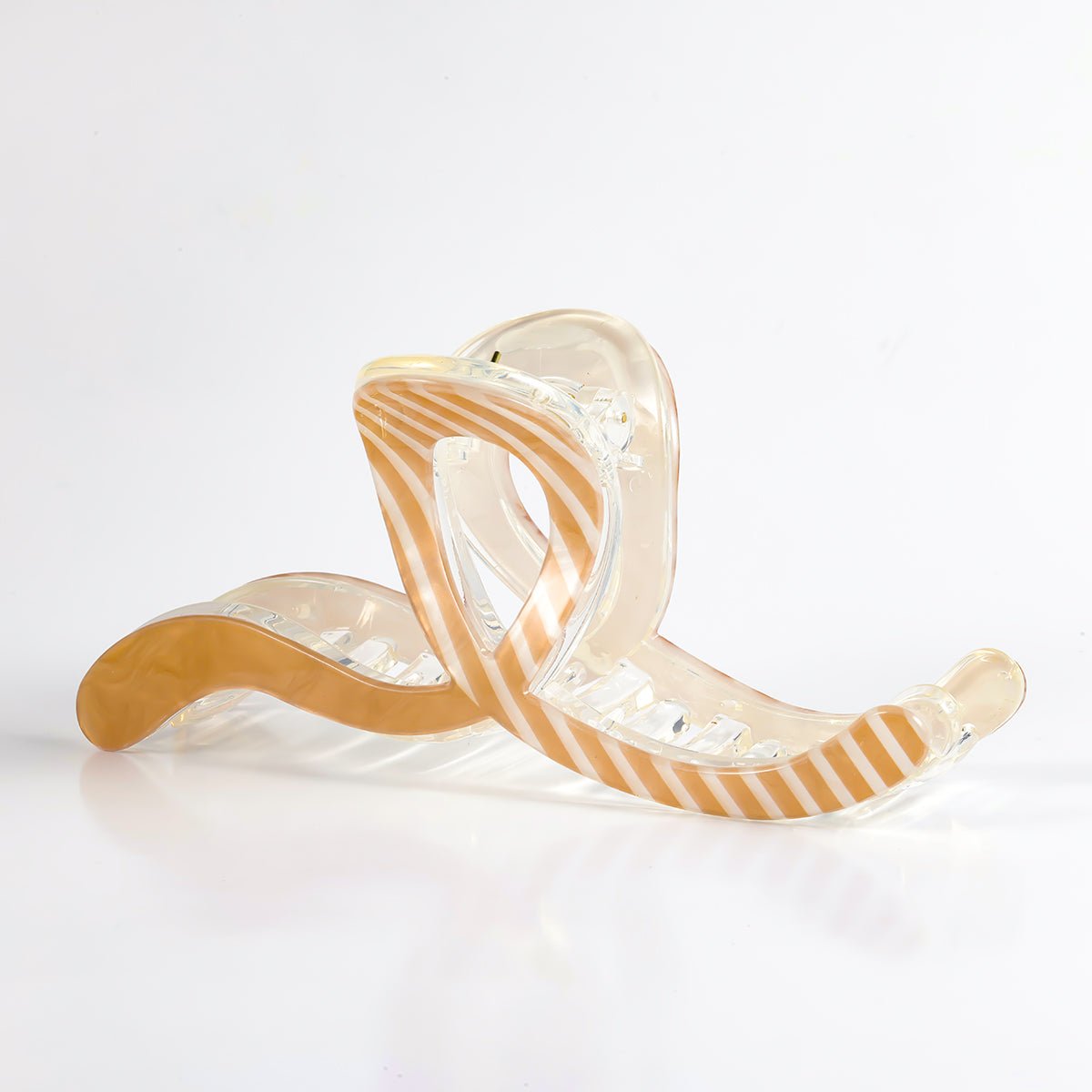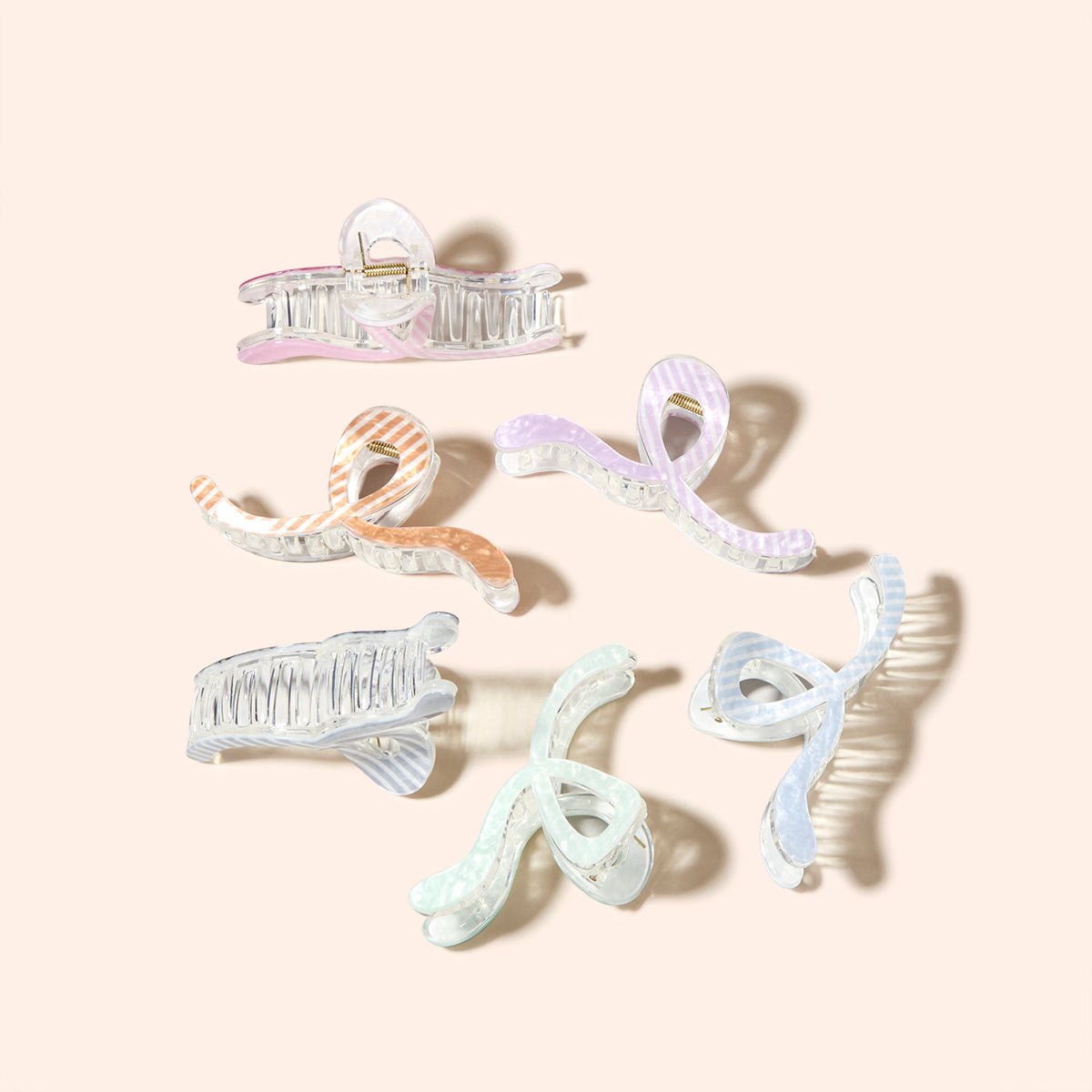 A lightweight ribbon-shaped acrylic claw clip with a secure grip for thin to medium hair. Featuring a pastel striped design and curved bow silhouette, this claw holds hair in place without slipping — perfect for everyday styling or quick updos.