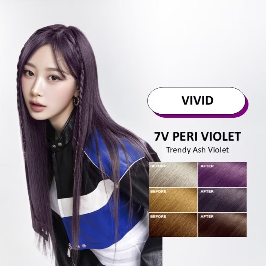 MISE EN SCÈNE Hello Bubble 7V Peri Violet is a DIY foam hair dye that delivers a vibrant, cool-toned violet hue with glossy intensity. Designed for easy home application, the non-drip bubble formula spreads evenly for full coverage and vivid colour payoff. Ideal for those seeking a fun, trend-forward update, it includes nourishing agents to help keep hair feeling soft post-coloring.