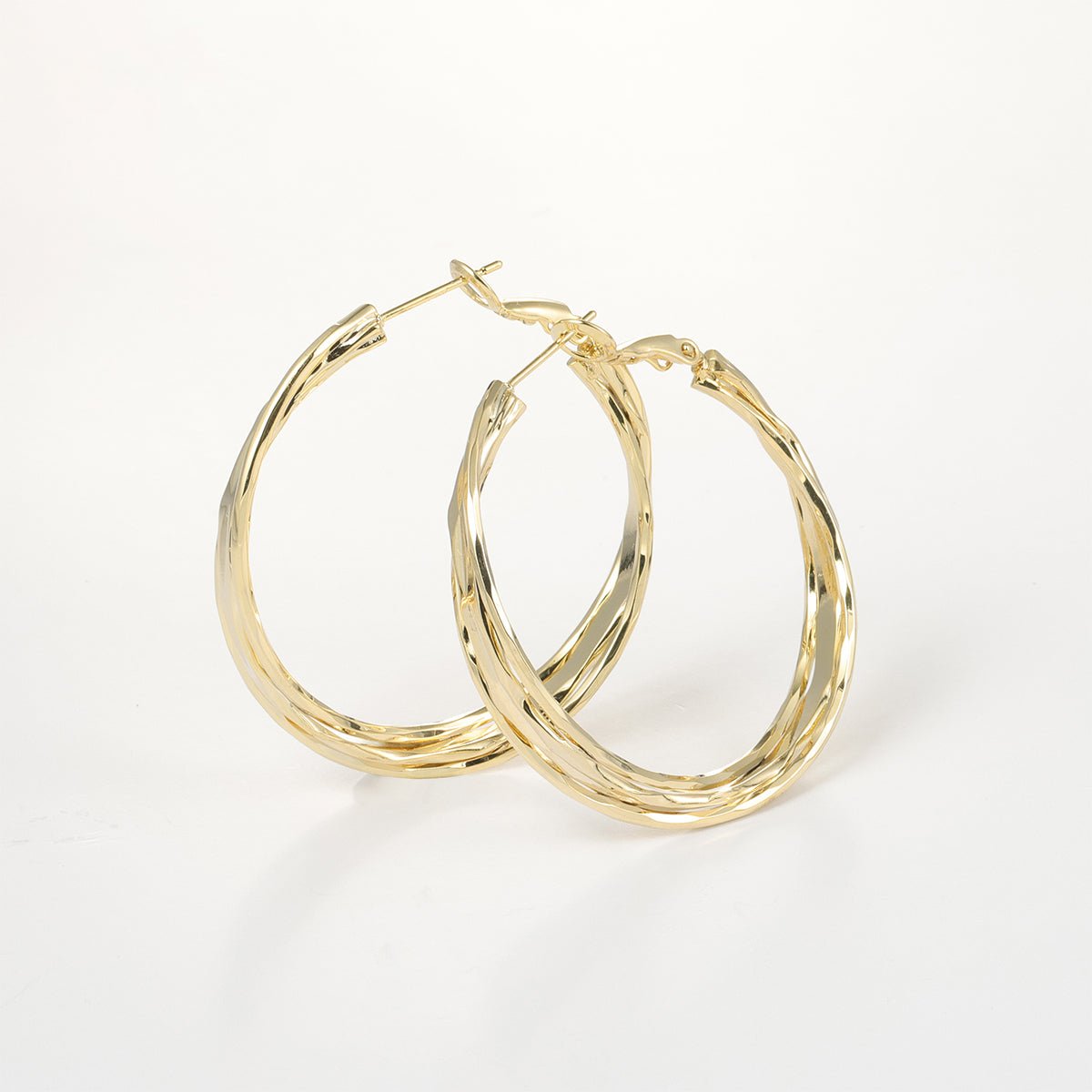 The Arch14 Effortless Charm Sculpted 18K Gold-Plated Hoop Earrings are a refined everyday accessory with a distinctive textured and twisted design. These 40mm golden hoops are made from high-quality brass and coated with durable gold plating, offering long-lasting shine. Lightweight and hypoallergenic, they ensure comfort for sensitive skin. The smooth 925 sterling silver latch-back clasp provides a secure fit, making these earrings perfect for both casual and professional settings, delivering effortless versatility for daily wear.