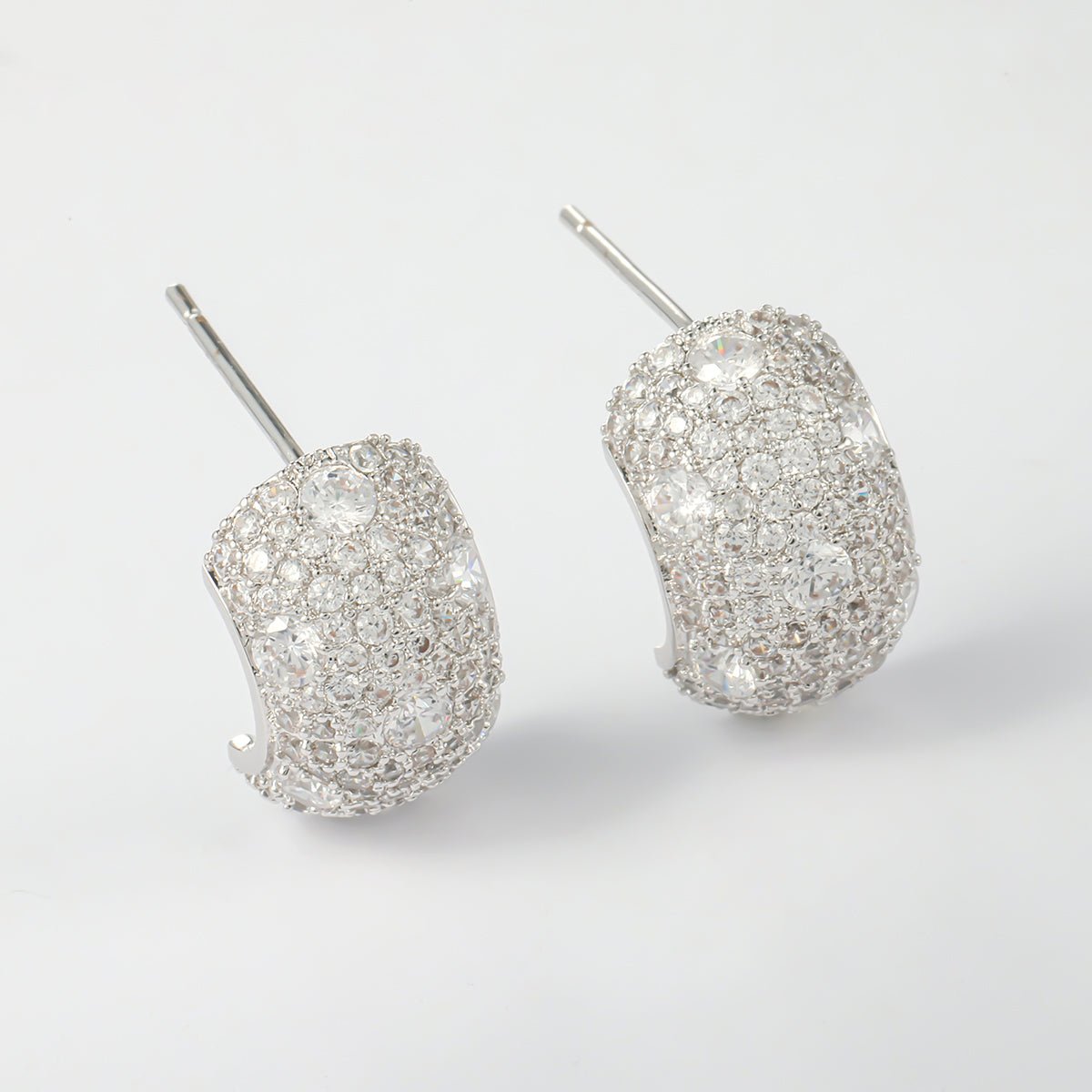 The Arch14 Glittering Stardust Pavé Platinum-Plated Dôme Earrings feature a classic dôme design that perfectly blends fashion with distinctive style. Crafted from high-quality brass and finished with durable platinum plating, the exquisite zircon pavé accents add a stardust-like sparkle. Lightweight and hypoallergenic, these earrings are ideal for sensitive ears. The secure 925 sterling silver pin ensures a snug fit all day long, making them perfect for daily wear, work, or casual outings—simple yet elegant.