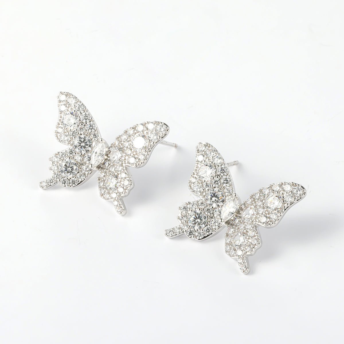 The Arch14 Dazzling Butterfly Pavé 18K Gold-Plated Stud Earrings feature an ornate butterfly design with zircon pavé accents that shine from every angle. Crafted from high-quality brass and finished with durable 18K platinum plating. Lightweight and hypoallergenic, these earrings are ideal for sensitive ears. The secure 925 sterling silver pin design ensures a snug fit all day long, making them perfect for daily wear, work, or casual outings—simple yet whimsical.