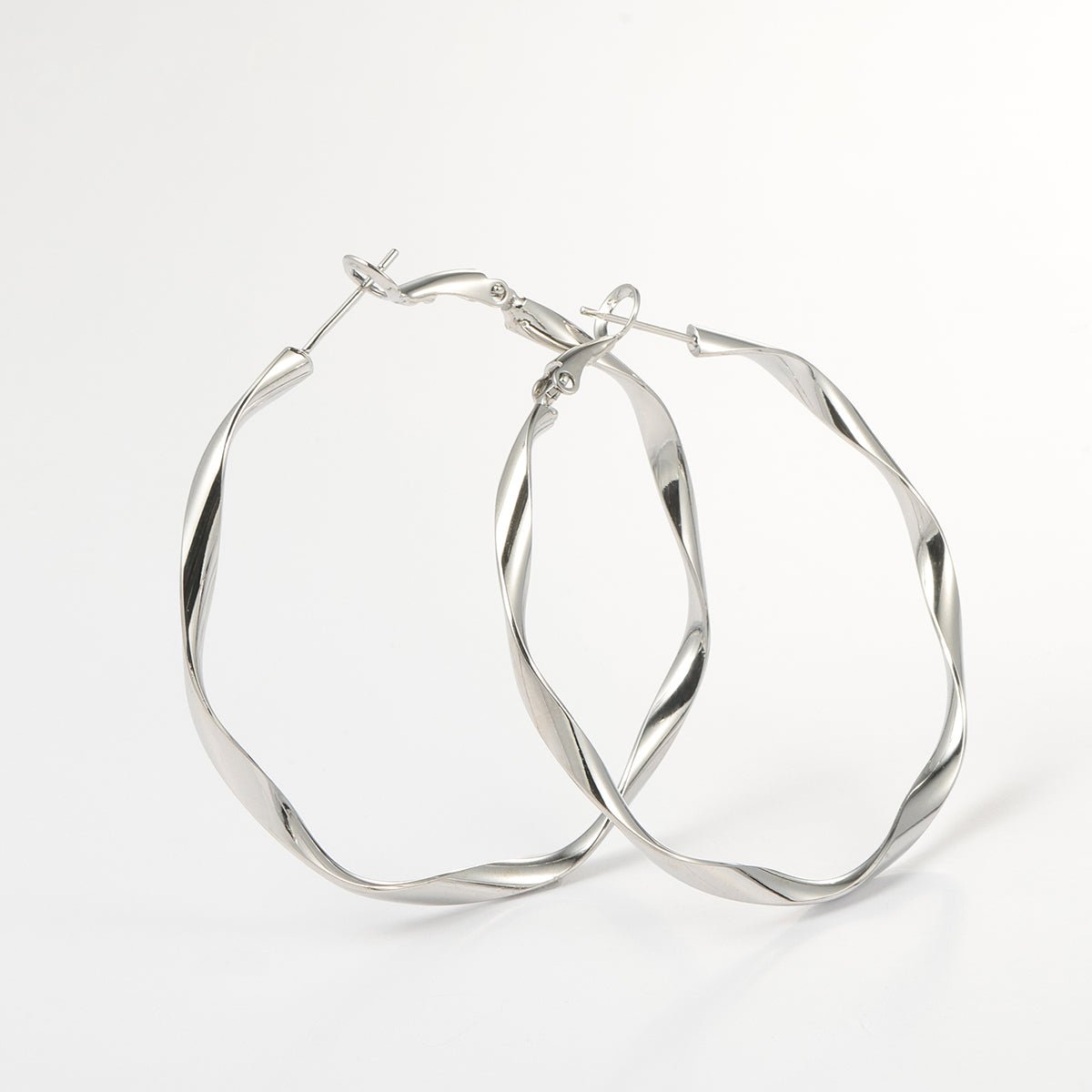 The Arch14 Gilded Twist 18K Gold-Plated Hoop Earrings are a refined and artistic accessory for everyday wear. These 50mm silvery hoops feature a sleek twist design that adds texture and personality to their smooth, circular form. Crafted from high-quality brass and coated with durable 18K gold plating, they provide lasting shine. Lightweight and hypoallergenic, they offer comfort for sensitive skin. The secure 925 sterling silver latch-back clasp ensures a snug fit, making them perfect for both casual and professional settings.
