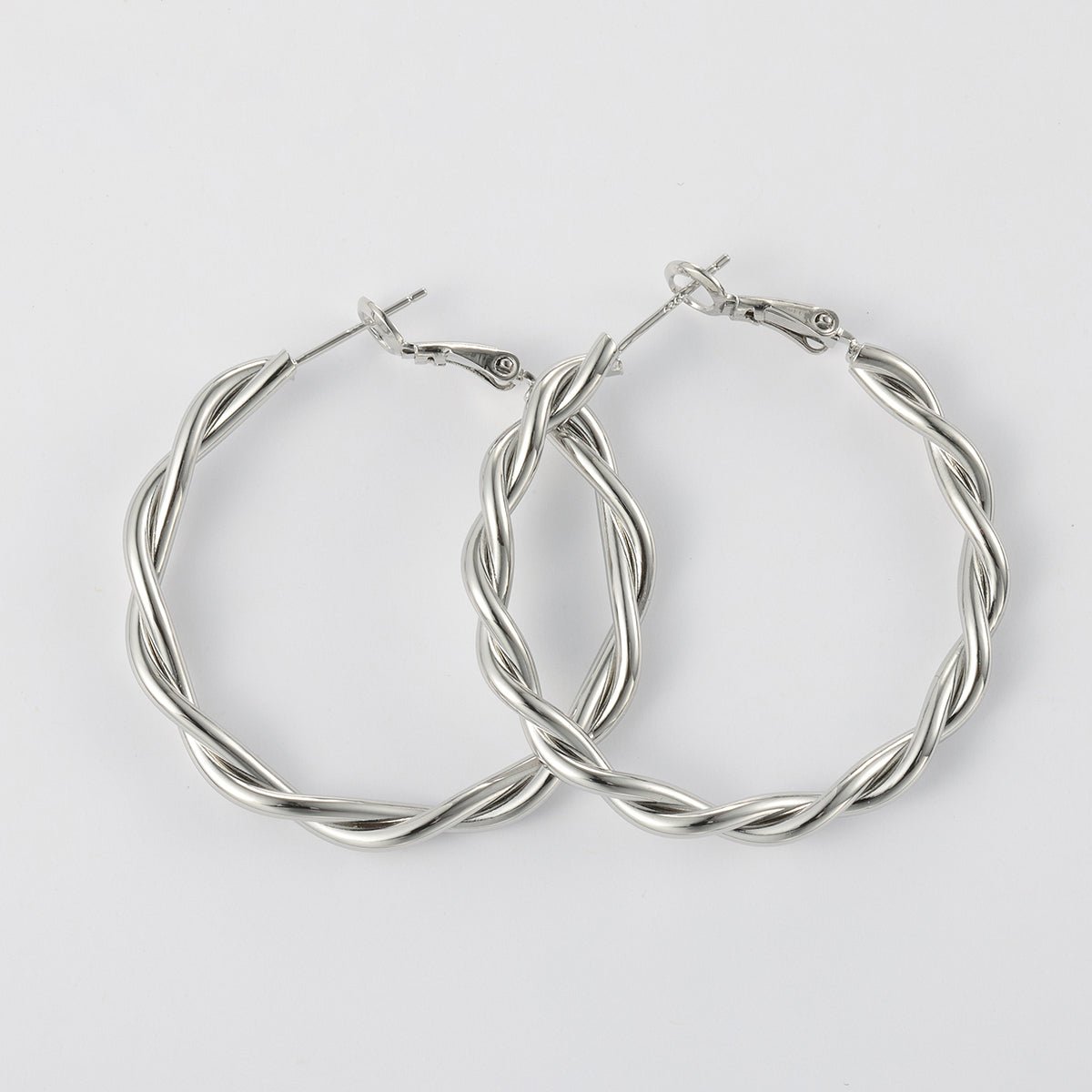 The Arch14 Sophisticated Braided Loop 18K Gold Hoop Earrings are elegant 40mm hoops designed for effortless everyday style. Crafted from high-quality brass and coated with durable 18K gold, the exquisite braided shape adds texture and personality. Lightweight and hypoallergenic, these earrings are ideal for sensitive ears. The secure 925 sterling silver latch-back clasp ensures a snug fit all day long. Crafted for effortless style.