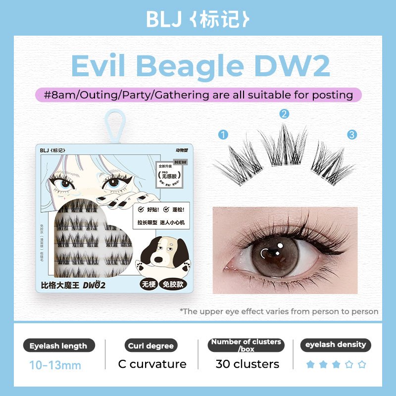 BLJ Animal False Eyelashes come in three distinct styles to suit your preferred look. These cluster lashes use a temperature-sensitive soft rubber strip that adheres on contact, no glue required. At 50% lighter than traditional false lashes, they deliver a comfortable, natural feel while enhancing lash volume and lift. Ideal for a polished, eye-enlarging effect without the hassle of liquid adhesive.