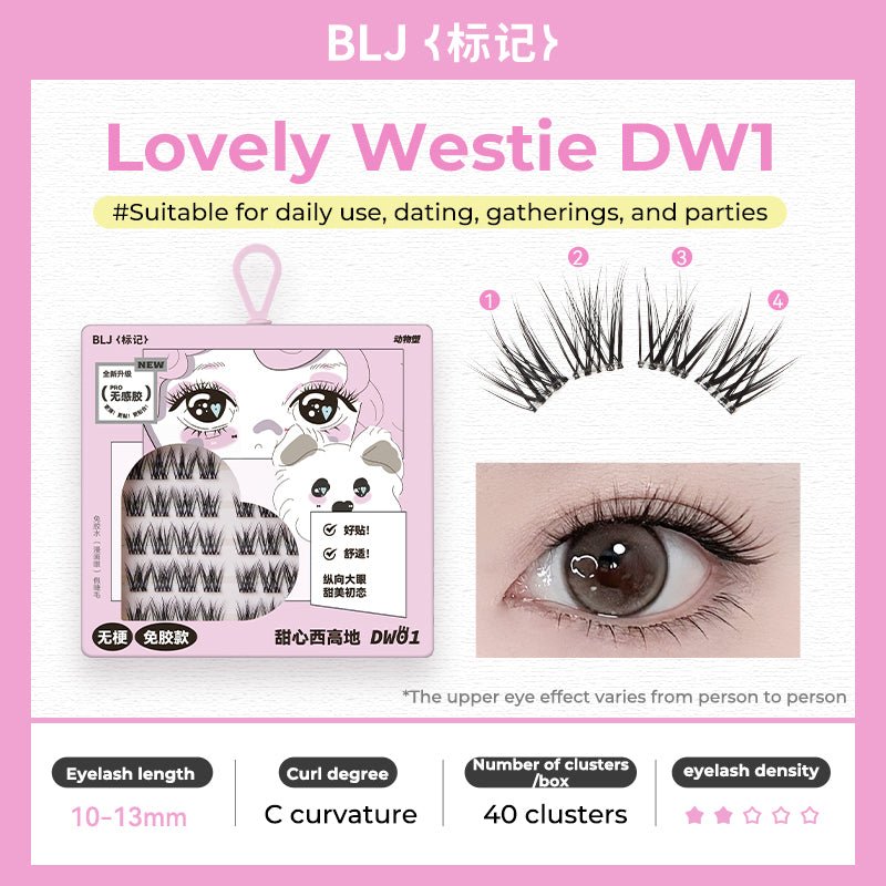 - DW1 Lovely Westie: Designed for a sweet, daily look to brighten the appearance of the eyes; contains 40 clusters.