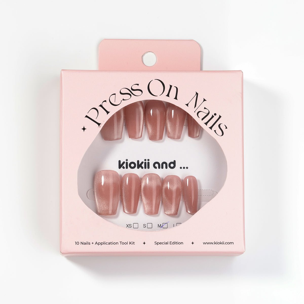 Kiokii Handmade Press-On Nails-Elegant Blush Cat's Eye Nail Set