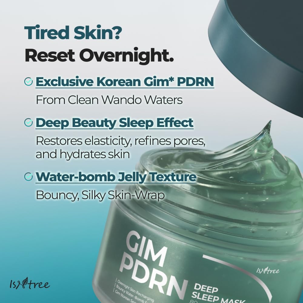 A lightweight gel‑cream overnight mask infused with seaweed-derived PDRN, peptides, and a multi-depth hyaluronic acid system. Designed to hydrate, smooth, and enhance skin’s appearance while you sleep.