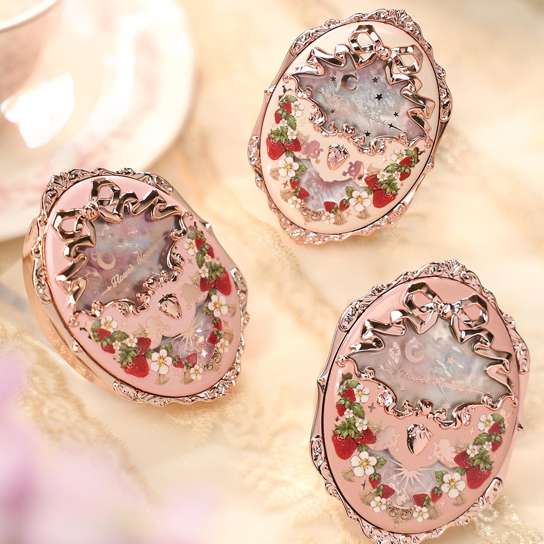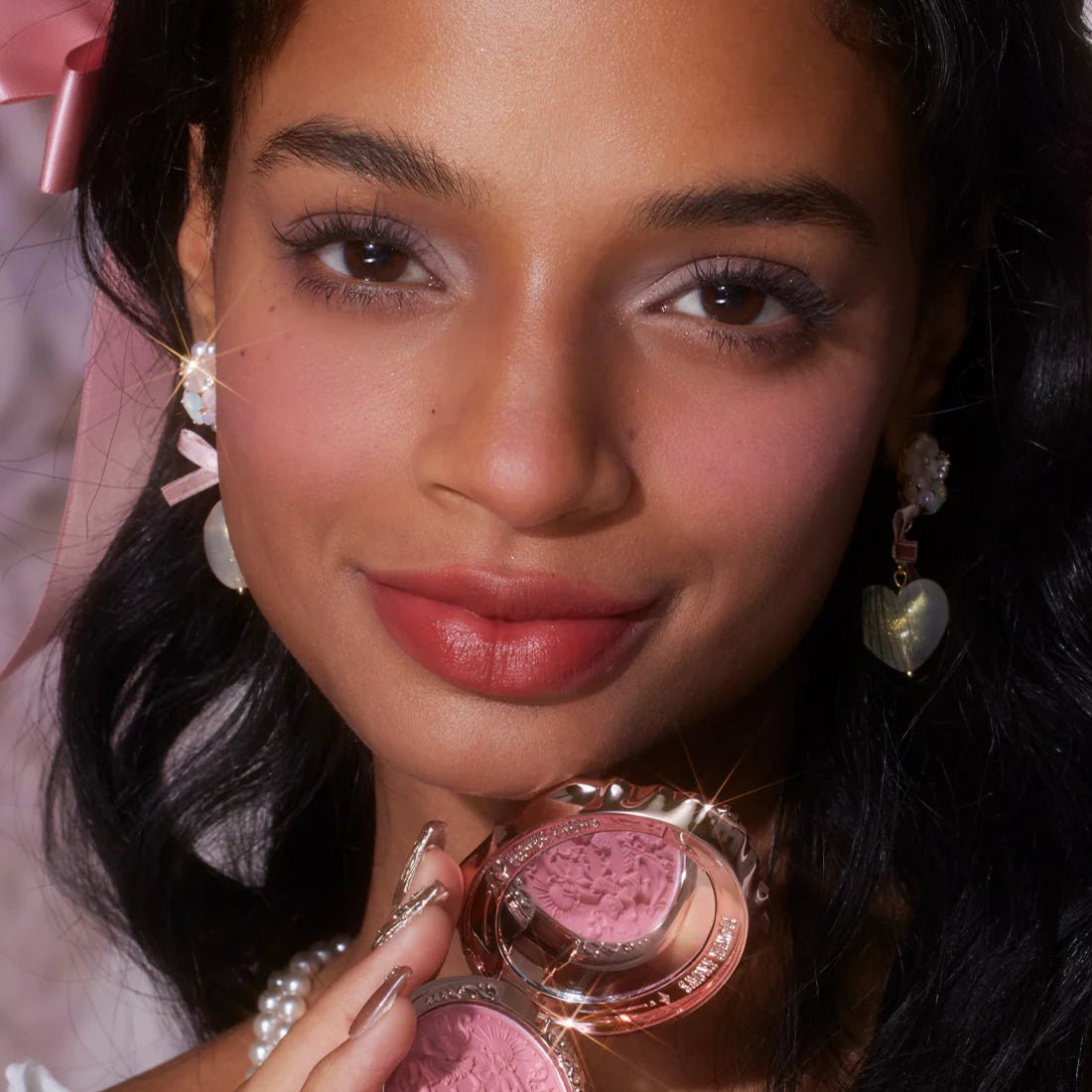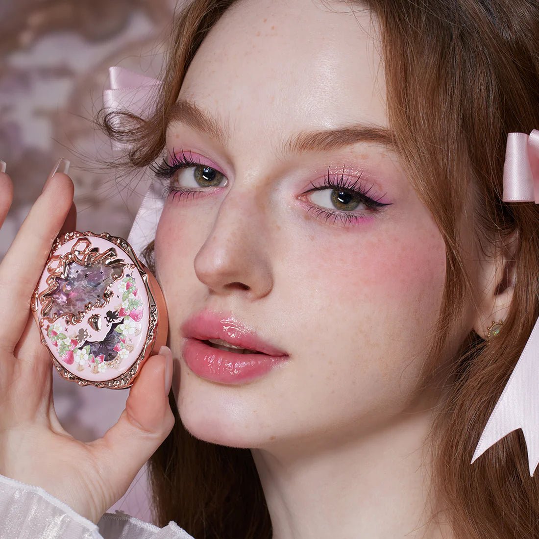A pressed powder blush featuring finely milled pigment and a soft matte finish. Housed in a vintage-inspired compact with Rococo-style detailing, this embossed blush doubles as a charming collectible and a functional addition to your makeup routine.