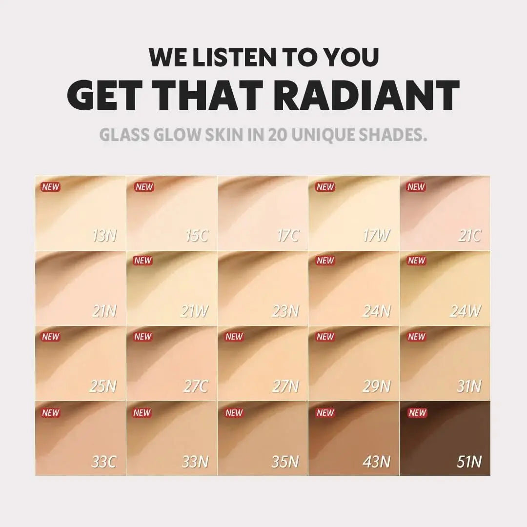 Ce fond de teint cushion est conçu pour offrir un teint impeccable et lumineux grâce à sa formulation unique. Il contient de l'acide hyaluronique blanc et du jus de Betula Platyphylla Japonica, qui apportent une hydratation à double couche pour une finition radieuse sans aucune sensation collante. Le scellement en aluminium garantit que les ingrédients actifs et l'hydratation sont préservés jusqu'à l'ouverture du produit, offrant une tenue longue durée et une adaptation aux peaux sensibles.