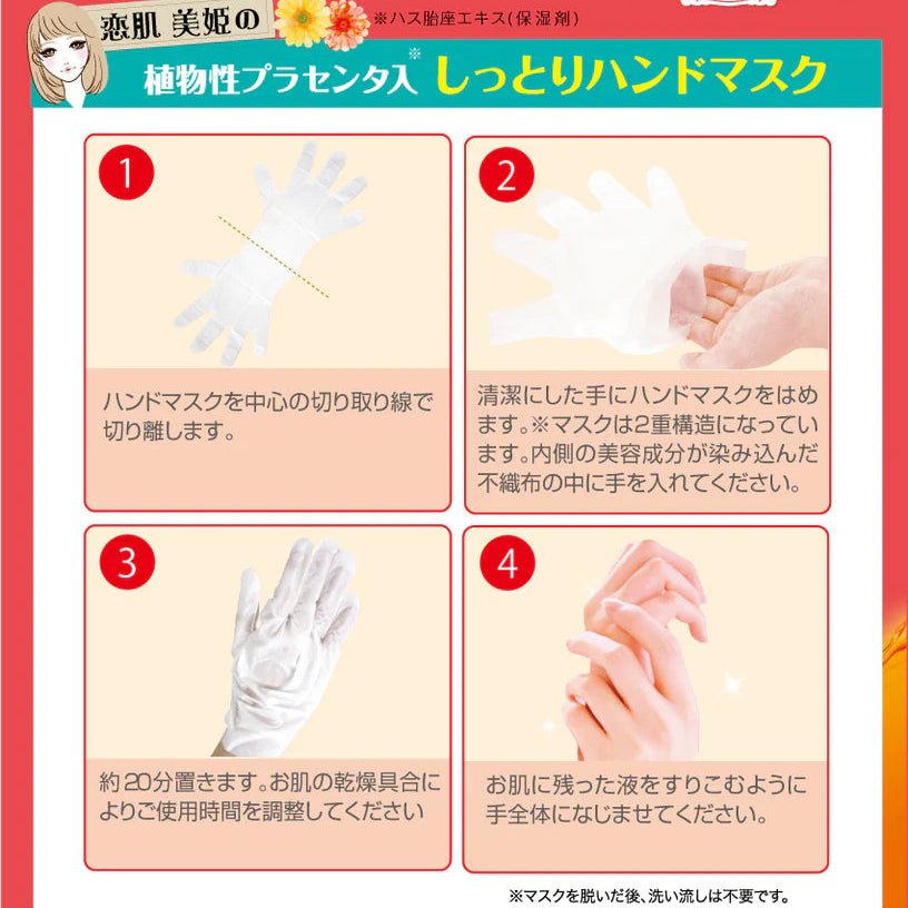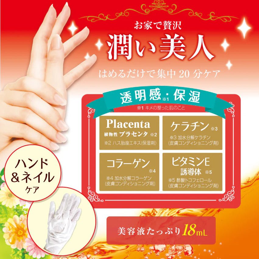 Obtenez des mains douces et rajeunies avec le LUCKY TRENDY Placenta Moist Hand Mask. Ce soin intensif japonais est enrichi en essence de placenta riche en nutriments, glycérine, collagène hydrolysé, vitamine E et autres actifs hydratants pour nourrir en profondeur la peau sèche et rugueuse tout en améliorant son élasticité et sa douceur. Le masque en forme de gant pratique apporte un coup de pouce concentré d'hydratation et de nutrition exactement là où vous en avez besoin, laissant les mains soyeuses, souples et rafraîchies en quelques minutes — la solution ultime de soin personnel pour les mains stressées par les lavages fréquents ou les conditions climatiques difficiles.