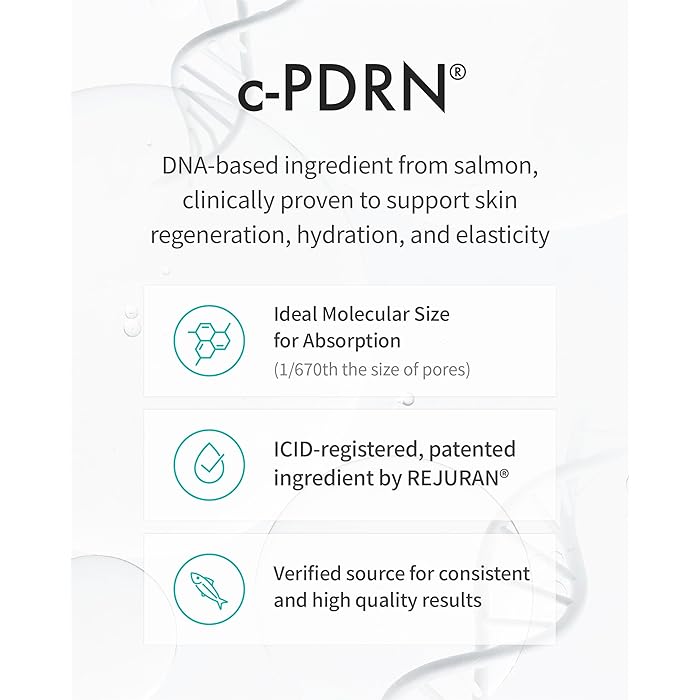 - c-PDRN® (Polynucléotide) : Soutient la régénération et l’élasticité de la peau, aidant à réduire les ridules et à favoriser un teint plus ferme et plus lisse.