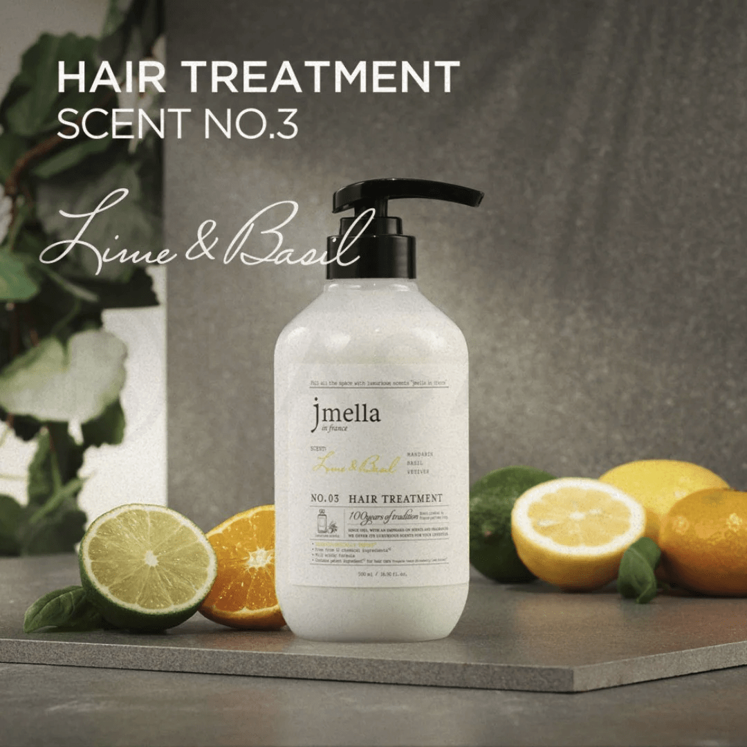 Refresh your hair care ritual with Jmella in France 03 Lime & Basil Treatment—a weightless daily conditioner that leaves hair silky, soft, and lightly scented with crisp citrus and herb. Designed to smooth and detangle without buildup, it’s your go-to for effortless shine and natural movement.