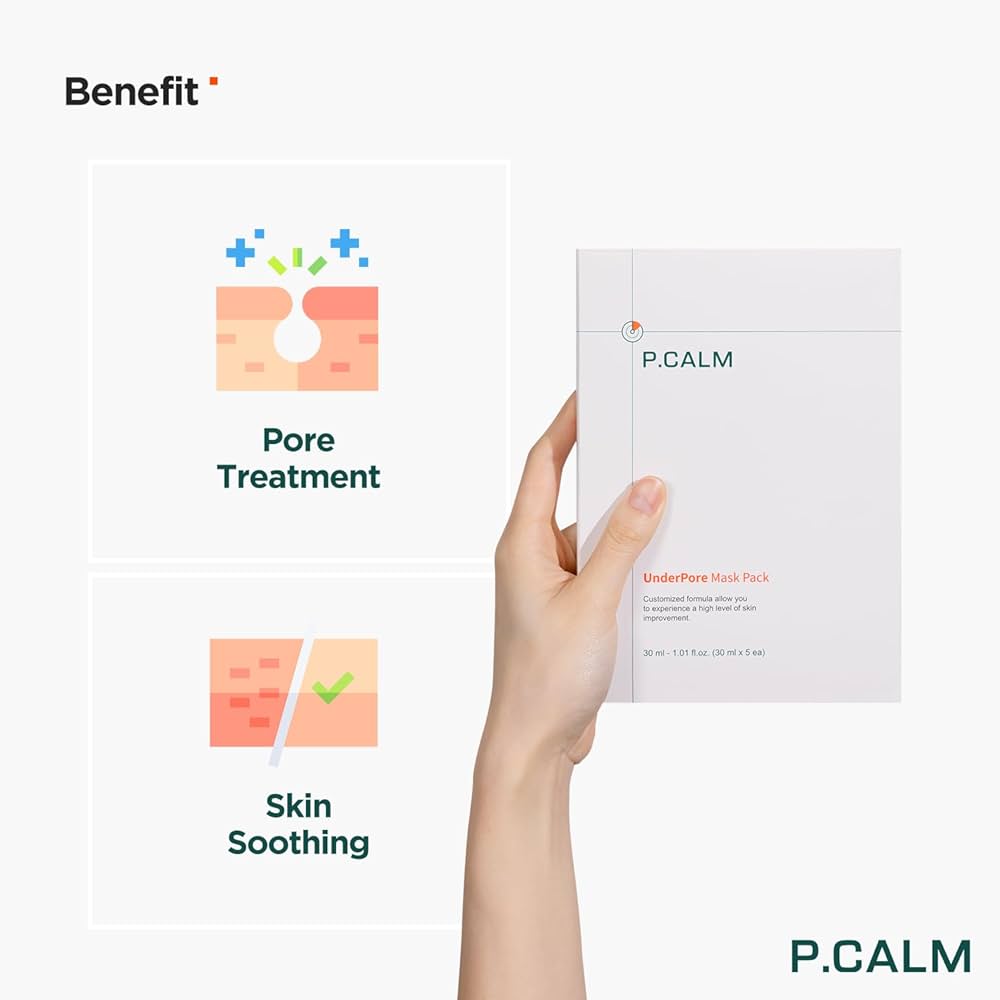 The P.CALM UnderPore Mask Pack is a Korean skincare sheet mask set designed to soothe, hydrate, and refresh the skin while helping with pore care. Each pack includes 5 individual masks made with a triple-layered gauze sheet that enhances adhesion and minimizes evaporation for maximum absorption. Its vegan, fragrance-free, and cruelty-free formula is gentle enough for sensitive and acne-prone skin.
